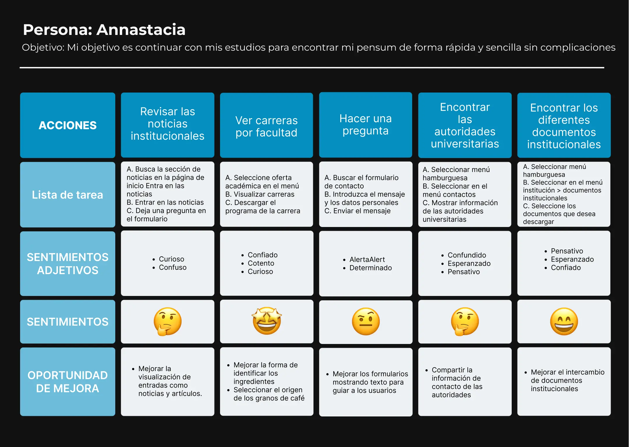 Para llegar a plantear correctamente el proyecto fue necesario investigar a los usuarios a partir de esto crear un user persona que nos llevara a generar un user journey map comprendiendo a fondo el flujo que deberÃa seguir nuestro user persona, luego plantear el site map generando una arquitectura de la información que permita el fácil acceso a la información que busca el usuario, lo que da lugar a la creación las primeras interfaces en papel o de manera digital y al completar el wireframe es necesario crear un design system para entregarlo a los desarrolladores para que estos cuenten con la tipografÃa, colores y elementos que forman parta del diseño general del sitio web.