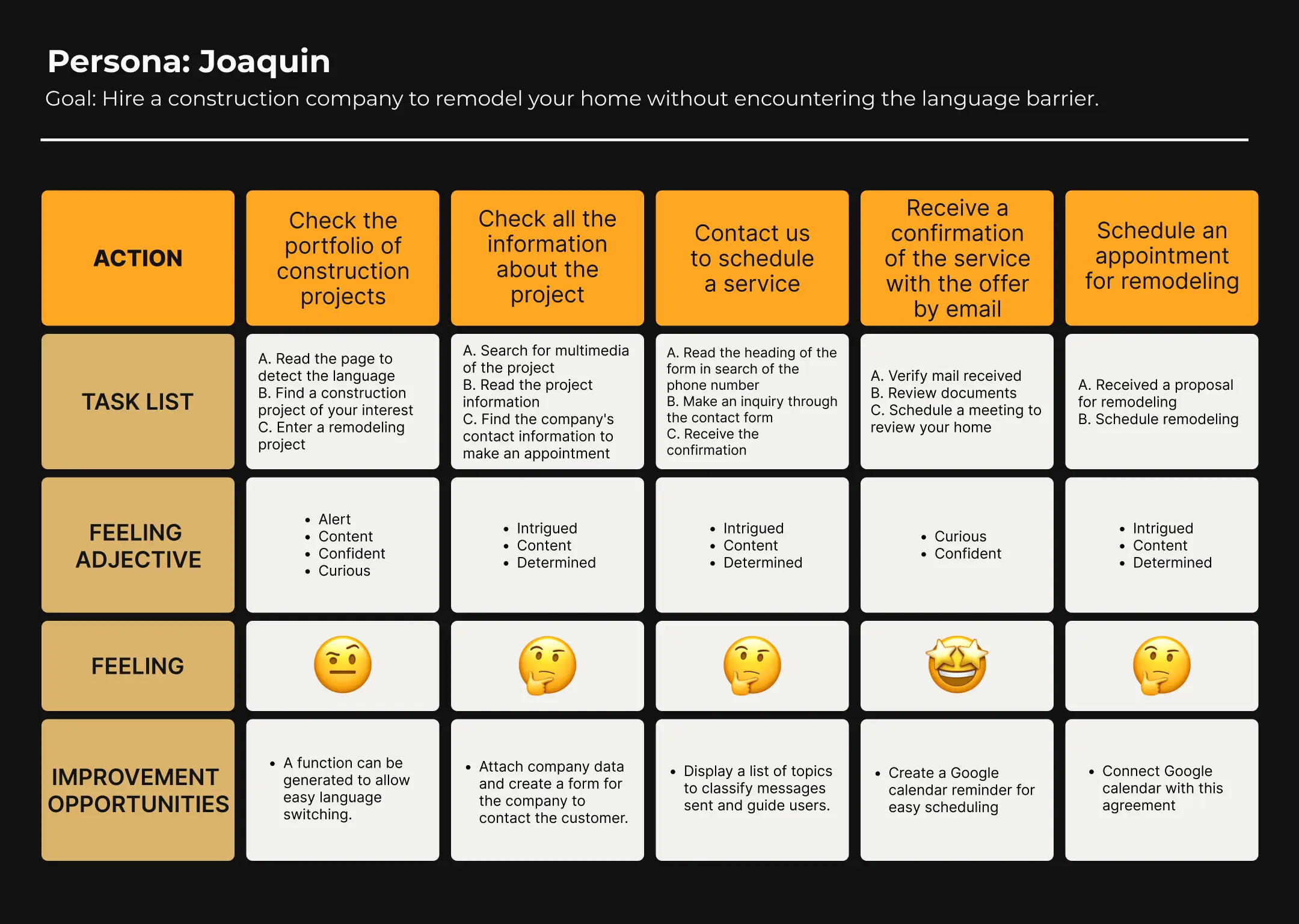 In this section it was necessary to share in a precise and not very extensive way the information of the project so that the clients can better understand the services offered or provided to the public and can hire their service trusting in the experience and the ease of communication that this company offers to Latinos and English speakers.