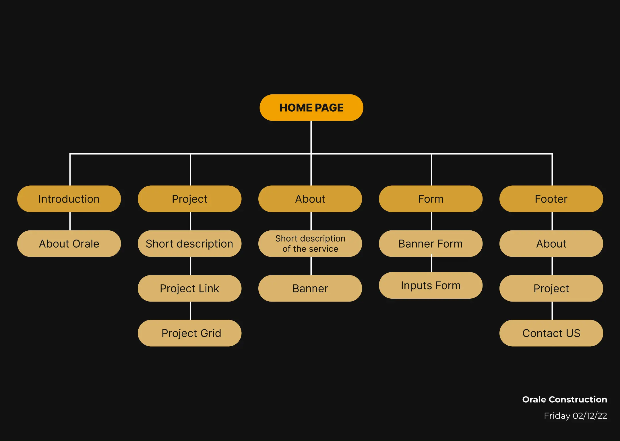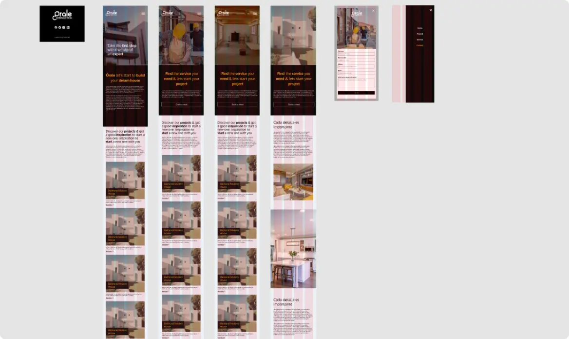 Design a portfolio website to showcase each of the projects Orale Construction has worked on to allow the company to present the projects they have worked on, explain all the services provided, and contact clients. With opportunities for improvement in mind, we needed to: create a content architecture that was easy to navigate, read and interact with, and the contact sections always visible through the contact forms.