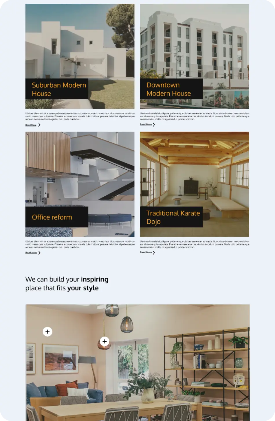 Each of the services provided by the company is shown in this section as it is necessary for customers to select and initiate the connection with the company to understand their needs, budget and start working on the remodeling project or a specific service.